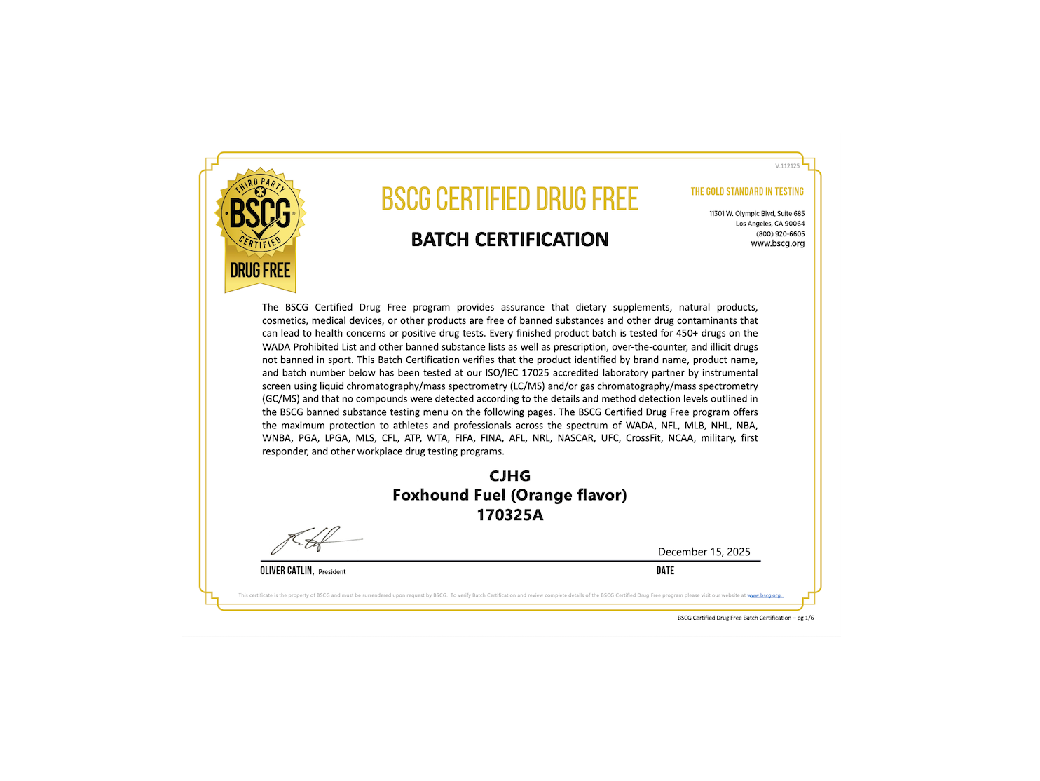 For added confidence, Foxhound is third-party tested by BSCG (Banned Substances Control Group) to ensure quality, purity, and compliance for competitive athletes.